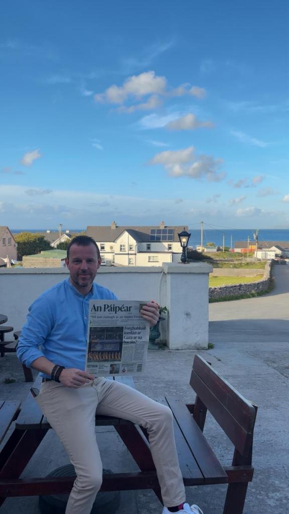 I brought my kids to Delphi in Mayo, and to Inis Oírr, na hOileáin Árann (the Aran Islands). We had a really lovely time agus bhí deiseanna againn ár gcuid Gaeile a úsáid ‘we had opportunities to use our Irish’. I was very proud watching them order food and drinks as Gaeilge because that takes more courage than just chatting to me.