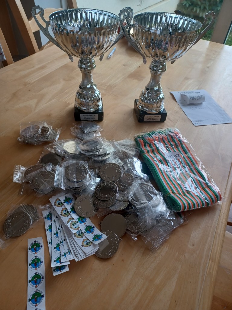 Pobal Gaeilge 15, the local Irish group I’m involved in, organised a fantastic Comórtas Peile na Gaelscoileanna (Gaelic Football Competition of the Gaelscoileanna) between Gaelscoil Thulach na nÓg, Scoil Oilibhéir and Gaelscoil an Chuilinn of Dublin 15 and Dunboyne. We had to postpone by a day when a Weather Warning suggested lightening strikes with potential risk to life! The next day, the sun came out, the competition went ahead, the children, the referees, the teachers and the adults all enjoyed the morning as Gaeilge, and ár gcara ‘our friend’ Máire Ní Churraoin kindly presented the medals and trophies for us.
