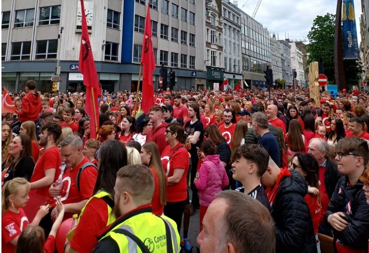 Conchúr Ó Muadaigh, a spokesperson of An Dream Dearg who organised the event, told the Irish Times and the BBC that this was the biggest Irish language event of a generation. The mass gathering, with estimates of up to 17,000 participants, has rightly been covered by many mainstream media outlets including RTÉ, The Journal and the The Belfast Telegraph.